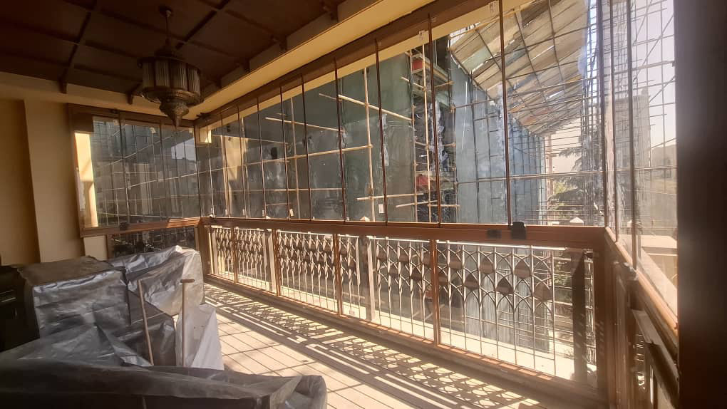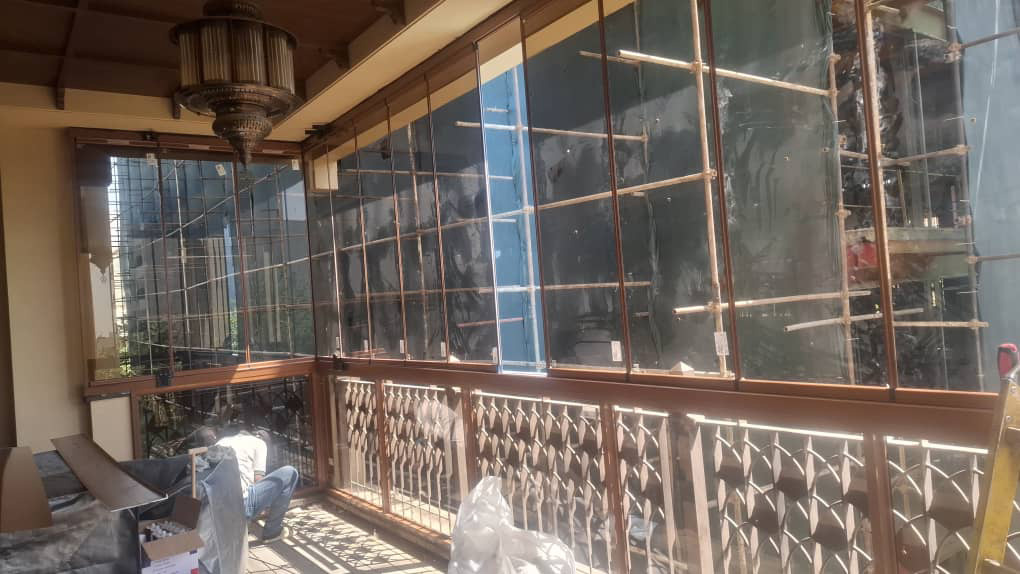در این پروژه شیشه های جمع شو سکوریت اجرا شده است. فریم ها برای همخوانی با تم رستیک، با رنگ قهوه ای کار شده است.